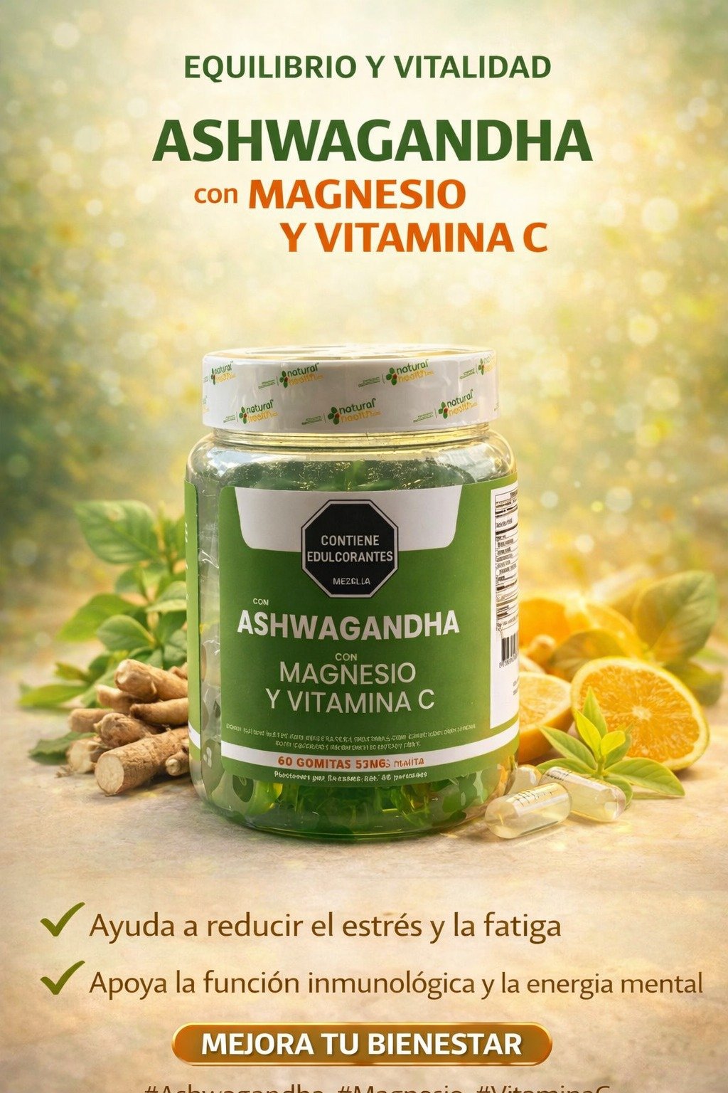 ✨ Ashwagandha + Magnesio + Vitamina C (Gomitas) — Equilibrio y vitalidad, en un ritual diario